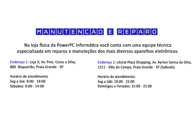 Trabalhamos com consertos, reparos e vendas dos seguimentos :Computador, PC Gamer , Notebook , Smartphone, Tablet, Ipad, Iphone, Macbook , Imac, Placa de Vídeo , Impressoras, Projetores , PlayStation , Xbox one e grande maioria de eletro portáteis . Nosso objetivo é oferecer um serviço de qualidade e atender sempre da melhor forma nossos clientes, procurando fidelizar e satisfaze-los.