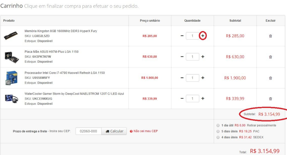 2° Adicione item por item no carrinho (Caso queira 2 unidades clique no +).